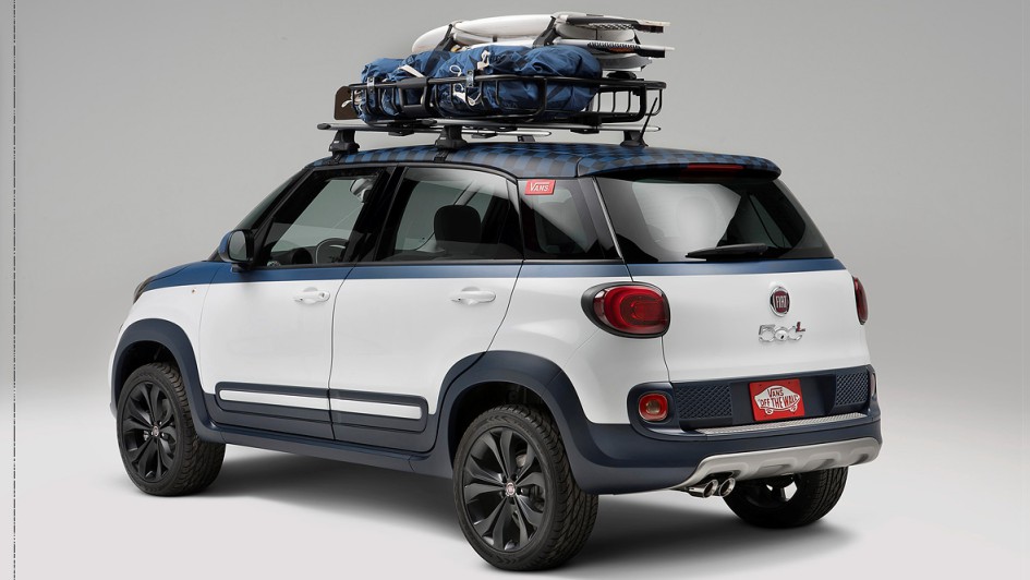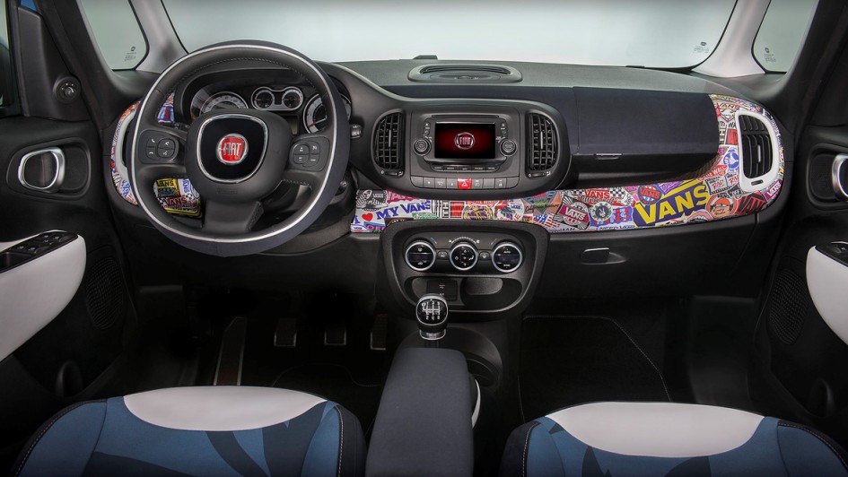 von 5: Die Karosserie ist im typischen Vans-Stil lackiert: die untere Hälfte weiß, im oberen Bereich blau und das Dach passend dazu im Schachbrett-Muster in blau-schwarz.