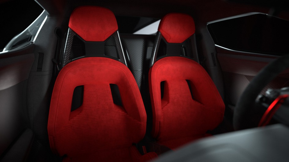 von 8: Im Inneren bietet das Fahrzeug unter anderem schwarzes Alcantara-Wildleder für die Instrumententafel und Teile des Lenkrads, während rot eloxierte Schaltwippen hinter dem Lenkrad die edle Optik unterstreichen.