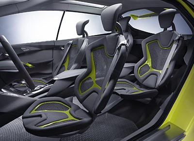 von 8: Die vier Leichtbau-Einzelsitze scheinen zu schweben, sind aber an einer Art Brückenkonstruktion unterhalb der Mittelkonsole aufgehängt.
