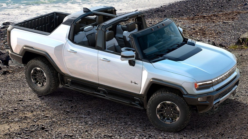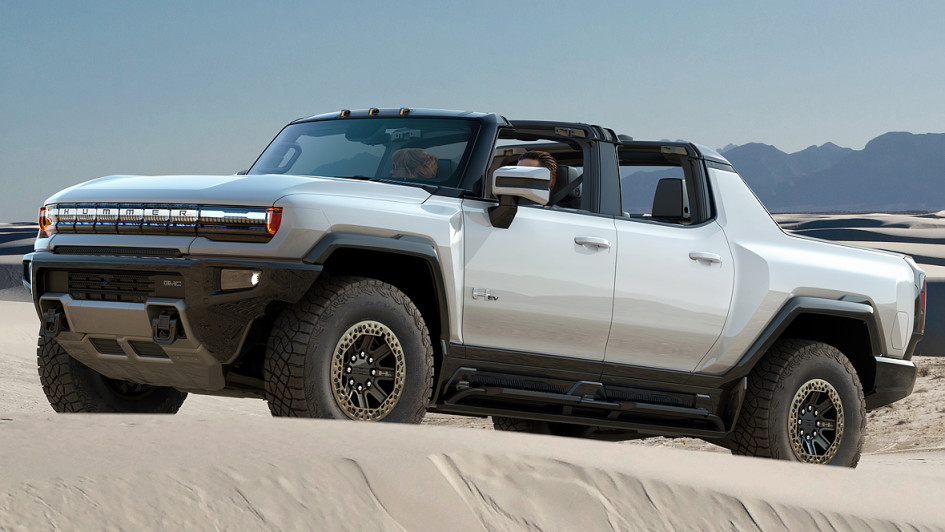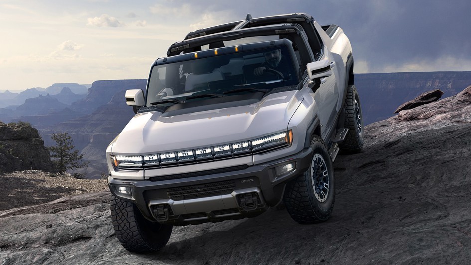 von 11: Martialisch sieht er immer noch aus, fährt jetzt aber mit grünem Gewissen: Der Elektro-Pickup GMC Hummer mit 1.000 PS und 15.000 Newtonmetern Drehmoment
