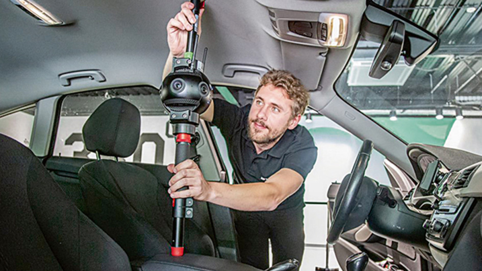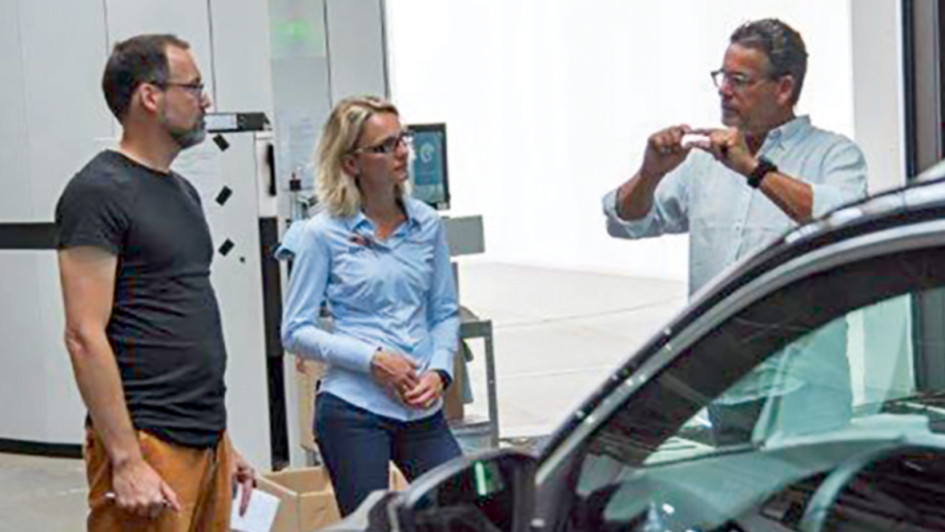 von 5: Mario Lingen (rechts) erklärt Anke Scheithauer (Hapitec) und Redakteur Rocco Swantusch den Weg zum digitalen Zwilling, der seinen Anfang im Twinner Space hat.