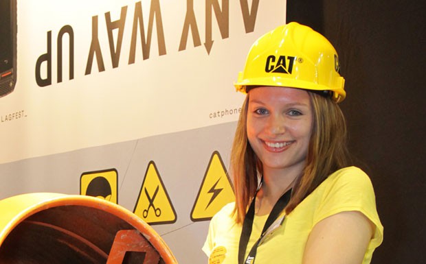 von 22: Lady Helmchen: Auch auf den ersten Blick elektronikunverdächtige Austeller waren in Berlin anzutreffen: Der Baugerätehersteller Caterpillar z.B. zeigte ein Mobiltelefon für den Outdoor-Bereich (Foto: Messe Berlin GmbH)