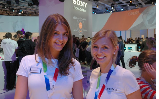 von 22: Eine Tätigkeit, die bei sechs Messetagen und z.B. bei Sony von tausenden Besuchern pro Tag ganz schön an die Substanz gehen kann. Doch Profis lassen sich das nicht anmerken und lächeln die Anstrengung einfach weg (Foto: asp)