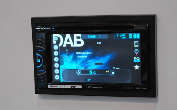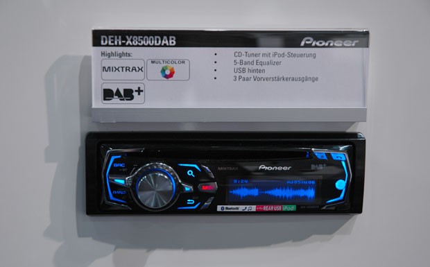 von 15: Pioneer zeigte aktuelle Radiogeräte mit DAB+: Mit dem neuen Ein-DIN-Gerät Pioneer "DEH-X6500DAB" kommt die neue Programmvielfalt des Digitalradio ins Fahrzeug.