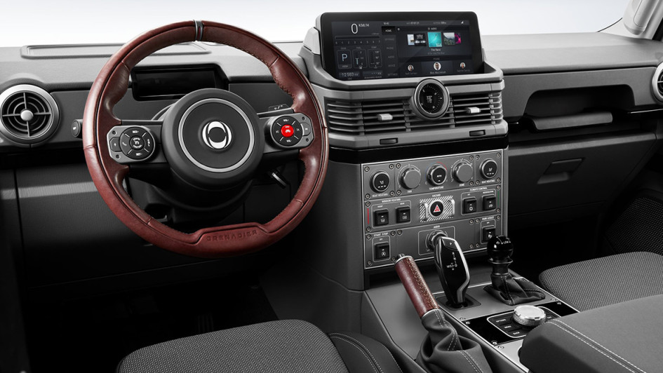 von 10: Innen gehen die Briten ganz eigene Wege und gönnen dem Grenadier ein Cockpit, das geschickt zwischen Bagger und Boeing balanciert- robust unverwüstlich und auch mit groben Pranken sicher zu bedienen