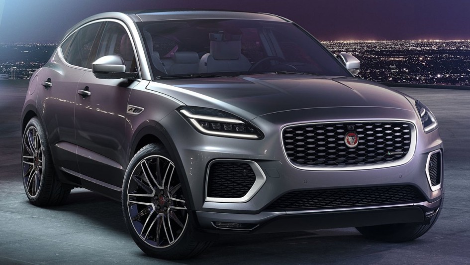 von 7: Äußerlich erkennbar ist der geliftete Jaguar E-Pace an einem geänderten Stoßfänger mit neuem Lufteinlass, LED-Scheinwerfern und einem modifizierten Kühlergrill.