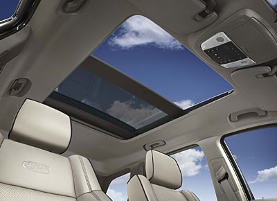 von 8: Außerdem gibt es u.a. eine Luftfederung, mit der sich das Fahrzeug um bis zu acht Zentimeter anheben lässt, sowie ein "Selec-Terrain"-System, das je nach Zustand des Untergrunds über einen Drehschalter verschiedene Einstellungen ermöglicht.