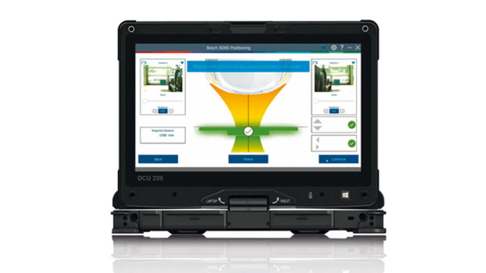 von 34: Die neue Softwarelösung für die Kalibrierung von Fahrerassistenzsystemen vereinfacht und beschleunigt die exakte Positionierung der Kalibriervorrichtung nach Herstellervorgaben mithilfe von Visualisierungen auf dem Werkstatt-PC.