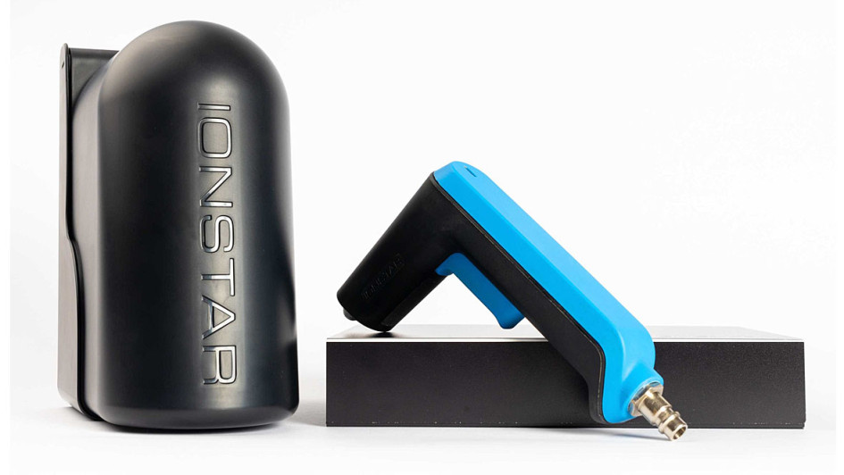 von 34: Die erste Ionisierpistole mit Faseroptik-Technologie läuft dank Luftturbinen-Antrieb ganz ohne Akkus oder Stromkabel. Sie ist robust, ergonomisch und wiegt nur 240 g.