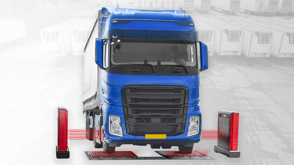 von 34: Das Quick Check System von Hunter ist eine vollautomatische Inspektionsstraße für Nutzfahrzeuge. Während der Durchfahrt werden ohne dass der Fahrer das Fahrzeug verlassen oder anhalten muss, Achsgeometrien und Reifenzustände digital vermessen.