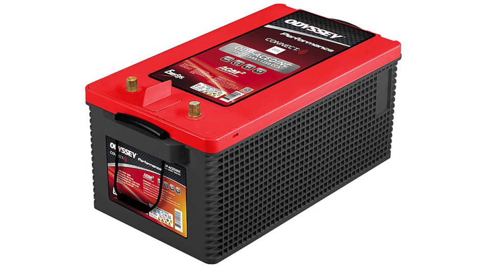 von 34: Weltweit erste AGM (Absorbed Glass Mat) TPPL (Thin Plate Pure Lead) 12 V Starterbatterie nach DIN C-1500 Standard mit integriertem und über Bluetooth digital vernetztem Sensor. Der eingebaute Sensor überwacht Spannung, Ladezustand und Innentemperatur der Batterie in Echtzeit und revolutioniert somit das Batteriemanagement. Das patentierte High-End-Batteriesystem ist mit einer Kaltstartleistung von 1.250 A für schwere kommerzielle Trucks gedacht.