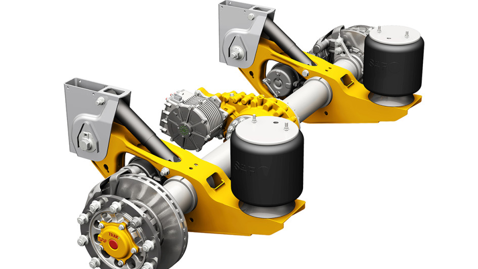 von 34: E-Achse für Elektrische Rekupertion. Innovative Idee, um kinetische Brems- und Verzögerungsenergie in konventionellen Sattelaufliegern verwertbar zu machen, die ansonsten als Wärme verloren geht.