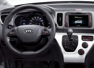 von 4: Im Cockpit wird der Fahrer unter anderem über den Ladezustand der Batterie und die Restreichweite informiert. Mit einem serienmäßigen Navigationssystem, speziell für Elektroautos, ist der Kia Ray EV ebenfalls ausgerüstet.