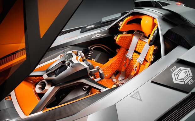 von 8: Das Interieur beinhaltet einen Racing-Sitz mit Vierpunktgurt, bei dem jeder Gurt eine andere Farbe hat, und ein für Kampfjets typisches Head-up-Display.