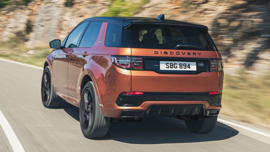 von 5: Darüber hinaus wird Land Rover für den Discovery Sport speziell in Kombination mit der gehobenen Ausstattung Sport Black (Bild) den 213 kW/290 PS starken Top-Benziner P290 anbieten. Zur Ausstattung der Topversion gehören Schwarzakzente, 20-Zoll-Räder, Panoramadach, LED-Scheinwerfer, schwarz lackiertes Dach und rot lackierte Bremssättel.