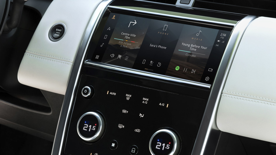 von 5: Land Rover wird auch die neue Infotainment-Plattform Pivi anbieten. Diese soll über einen Touchscreen noch übersichtlicher bedienbar sein, neueste Konnektivitätstechnik bieten sowie das Pairing von zwei Telefonen gleichzeitig und zudem On-the-Air-Updates erlauben.