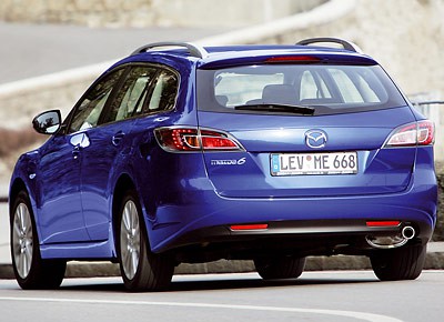 von 10: Mazda bringt den 6er in vier Ausstattungsstufen, wobei Details wie Bi-Xenon-Scheinwerfer mit Kurvenlicht, Reifendruckkontrolle und Einparkhilfe erstmalig im Angebot sind.