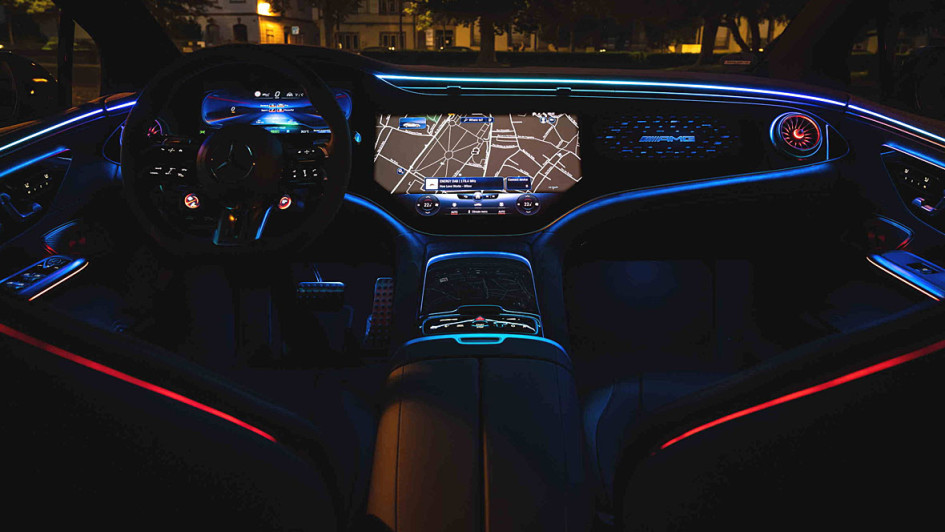 von 14: Trotz seiner progressiven Grundform wirkt der EQE wie ein echter Mercedes. Nur Auspuffendohre sucht man bei dieser AMG-Version vergeblich.