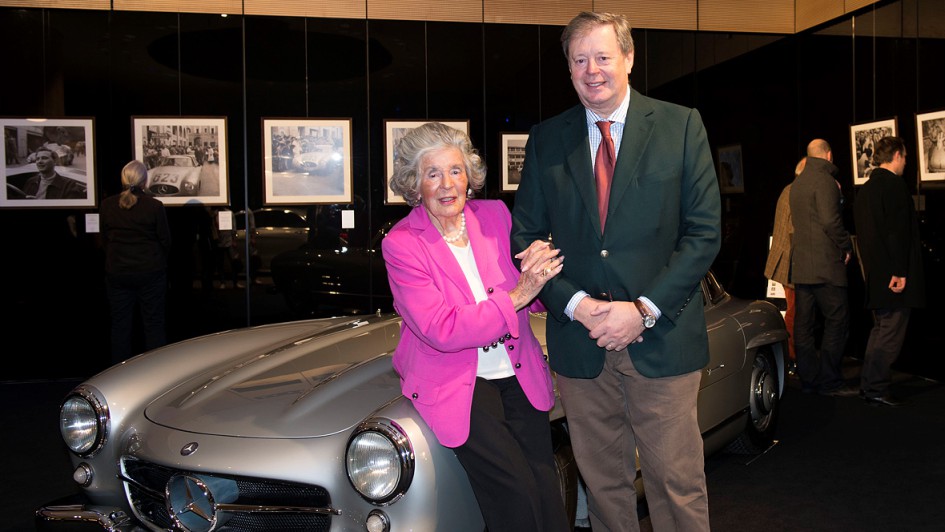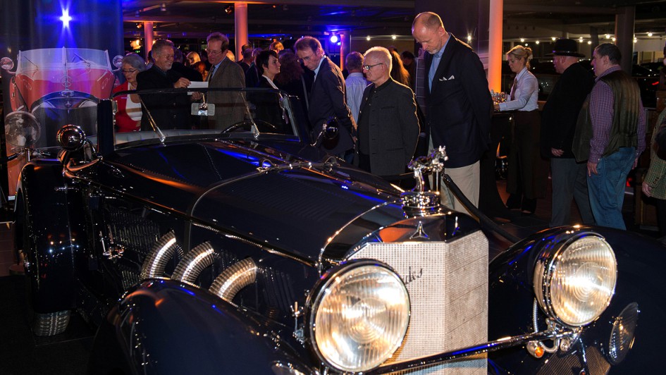 von 6: Eröffnung des Mercedes-Benz Classic Centers in München: Niederlassungsdirektor Ulrich Kowalewski (2.v.l.) begrüßte die Oldtimer-Fans Marianne Fürstin zu Sayn-Wittgenstein, Peter Prinz zu Sayn-Wittgenstein (l.) und Ernst-Theodor Henne (r.)