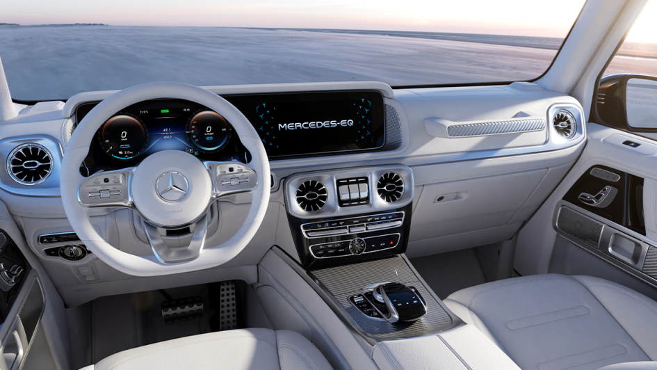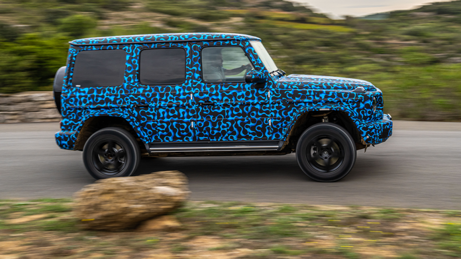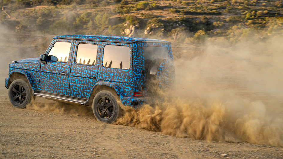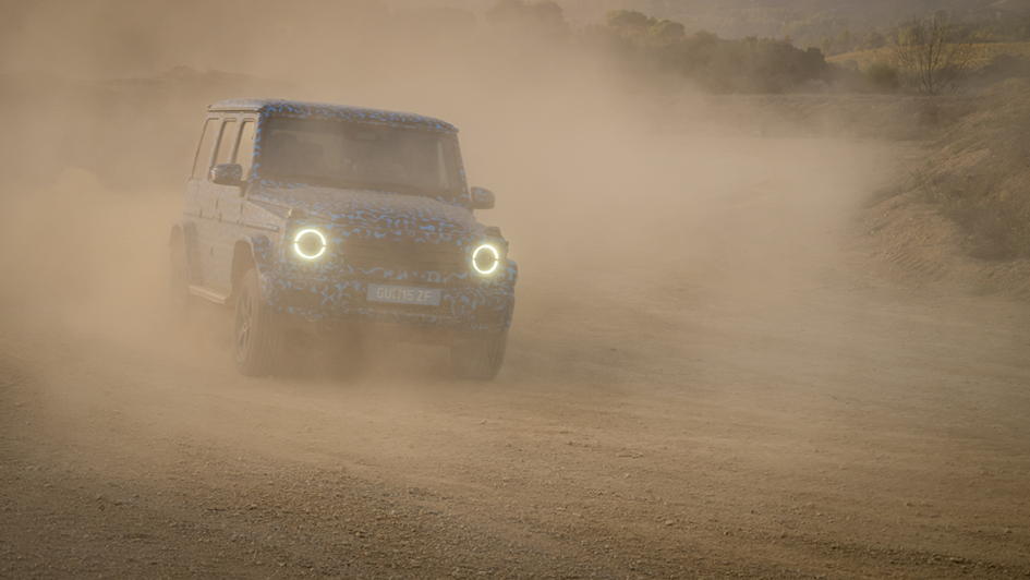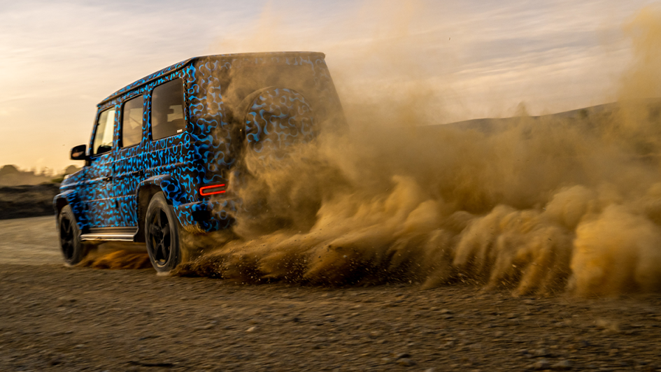 von 11: Drehwurm-Alarm dagegen bei der finalen Übung: Wenn das kurvenäußere Räderpaar auf Rückwärts-Drehung programmiert wird und sich die Kollegen der anderen Seite nach vorwärtsbewegen, dreht sich die ganze G-Klasse wie ein Leopard-Panzer auf der Stelle.