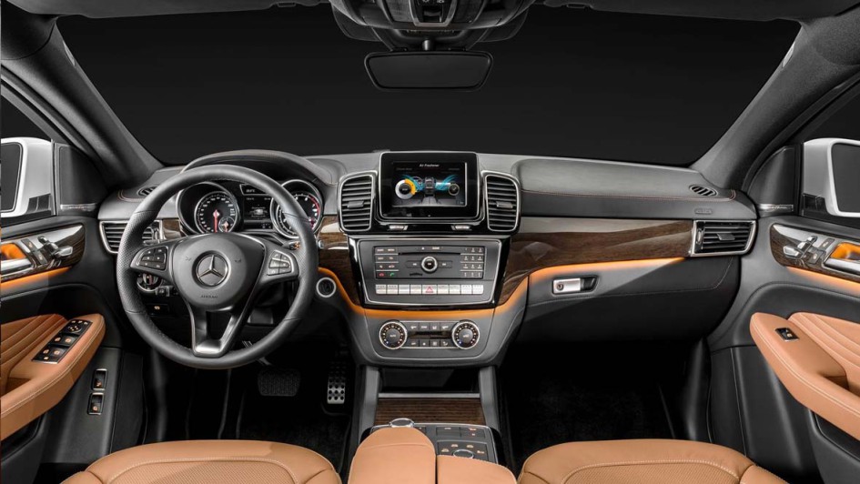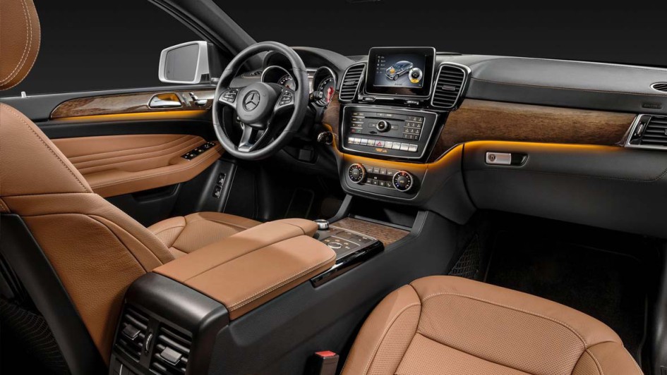 von 7: Kein Zufall also, dass das SUV die dynamische Heckpartie mit den schmalen Leuchten und der Chromzierleiste vom schnittigen S-Klasse Coupé geerbt hat