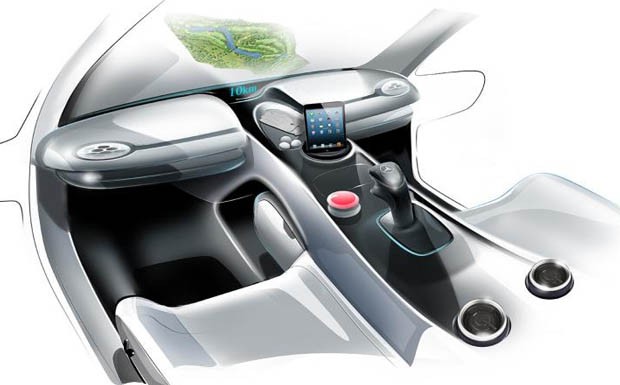 von 6: Die Steuerung erfolgt über einen Joystick in der Mittelkonsole, sodass beide Insassen fahren können. Die Funktionen lassen sich sämtlich auch über einen Touch-Screen bedienen.