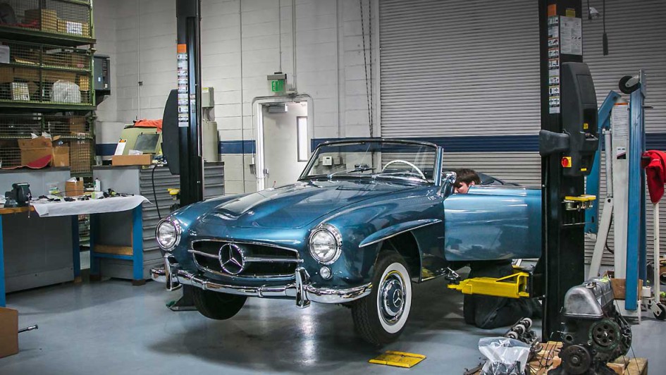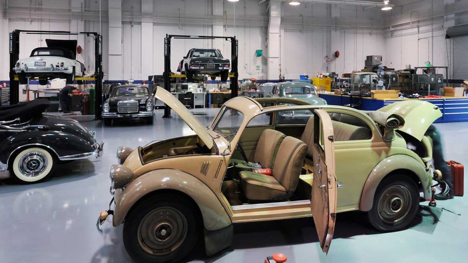 von 10: Die Mitarbeiter des Classic Center erledigen Karosseriearbeiten, können lackieren, Motoren prüfen, Metallteile nachbauen und Schreinern oder Sattlern.
