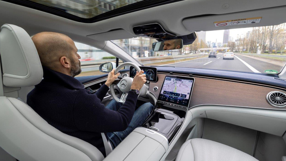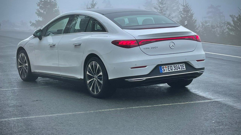von 10: Mit knapp fünf Metern Länge gehört der EQE zu den großen Elektroautos. Bei der Breite ist er sich sogar mit dem EQS einig und mit 2,10 Meter inklusive Spiegel breit.