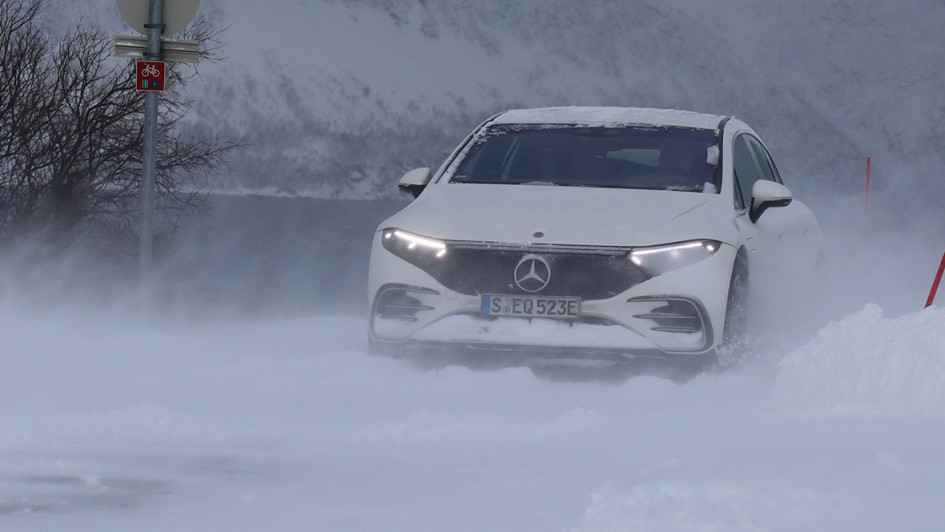 von 10: Knapp 108 kWh Batteriekapazität sollten die Sorgen vertreiben, 523 PS die Reisezeit zumindest in Deutschland reduzieren und der Allrad-Antrieb jenseits des Polarkreises die Spikes kompensieren.