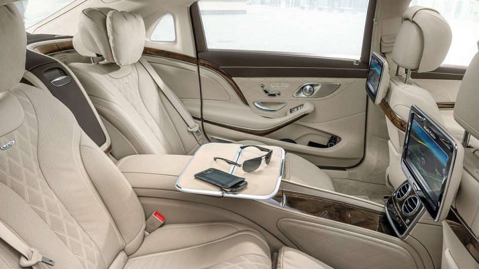 von 12: Das Interieur ist noch einmal verfeinert, optional sind Extras wie Klapptische zum Arbeiten oder eine Sprachverstärkung für die Unterhaltung mit dem Chauffeur erhältlich.