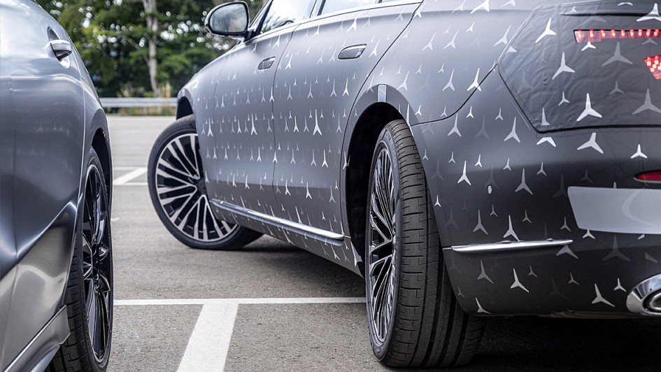 von 5: Noch ist die neue Mercedes S-Klasse getarnt unterwegs. Endgültig enthüllen werden die Stuttgarter die Neuauflage ihres Flaggschiffs Anfang September.