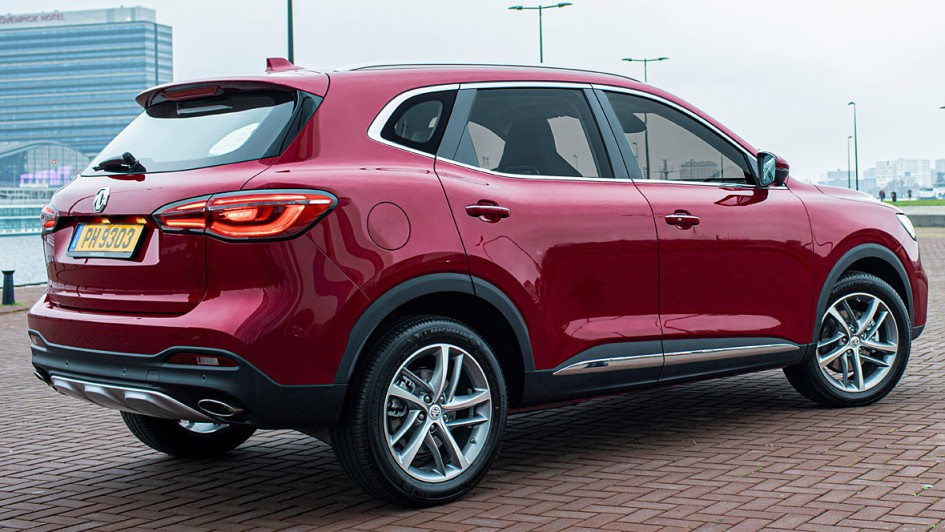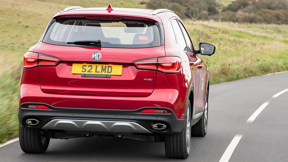 von 11: Eigentlich will sich MG als elektrische Automarke etablieren. Der EHS hat allerdings noch einen Verbrenner an Bord, wie die Auspuffrohre eindeutig verraten.