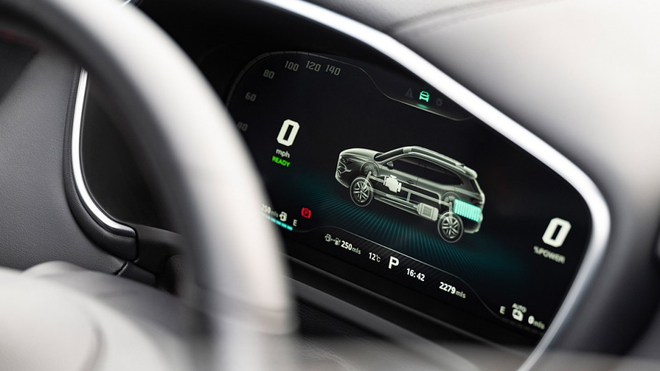 von 11: Während der Verbrenner seine Kraft via Sechsgangautomatik an die Fronträder leitet, ist die E-Maschine an eine eigene Viergang-Automatik gekoppelt. Damit soll das Selbstschaltgetriebe dem Fahrer praktisch zehn Übersetzungsvarianten zur Verfügung stellen.