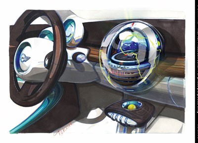 von 8: Die Innengestaltung wird einer futuristischen Anmutung folgen. Im Bild der so genannte "Mini Center Globe", eine kombinierte Bedien- und Displayeinheit.