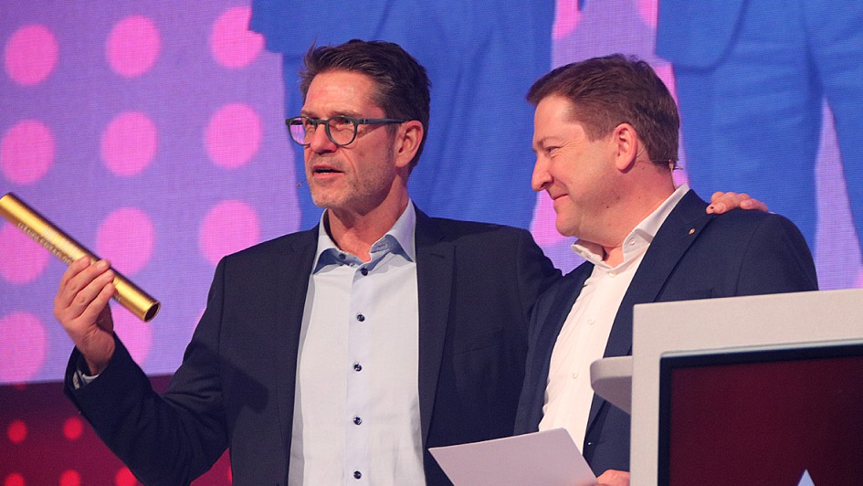 von 11: Der bisherige Vertriebschef von Mitsubishi Motors Deutschland, Jens Schulz (re.), übergab das Staffelholz an seinen Nachfolger Michael Weinig.