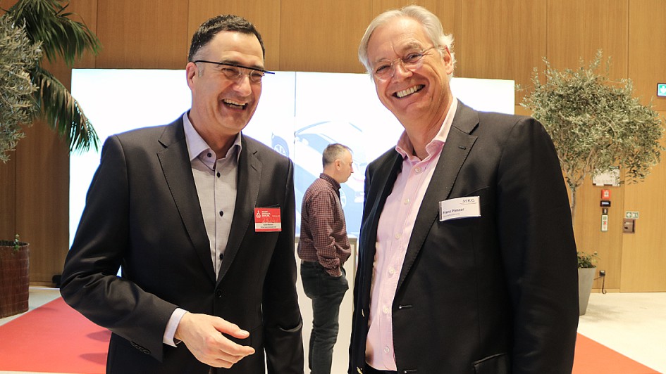 von 11: Am Rande der Tagung sprach der Mitsubishi Partnerverbands Vorsitzende Guido Riemann (li.) mit dem Vorsitzenden der Geschäftsführung der MCE Bank Franz Plesser.