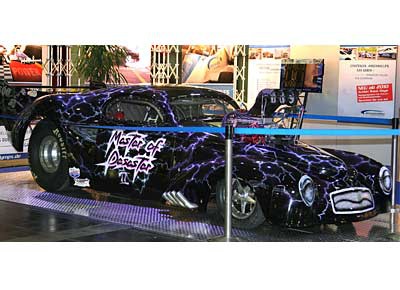 von 13: Halle 4: Eine geballte Ladung lauert unter dem Blech des "Master of Desaster II" Dragsters.