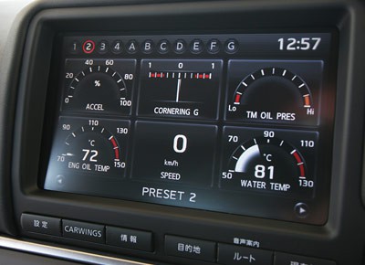 von 8: Seine Graphiken wurden von Computerspiel-Designern entworfen und bilden u.a die Öl- und Wassertemperatur des Motors, den Öl-, Lade- und Bremsdruck sowie die Querbeschleunigungskräfte ab.