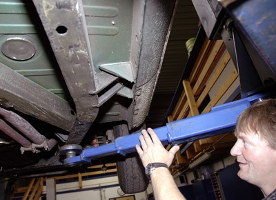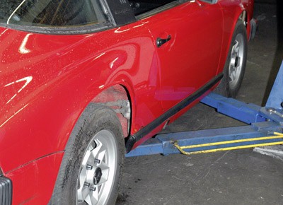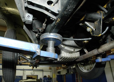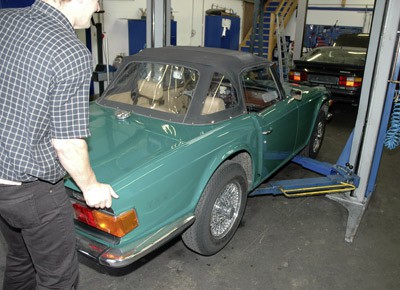 von 16: Dieser Triumph verfügt über die typische Bauart mit Stahlblechkarosserie und separatem Rahmen. Das Fahrzeug muss am Rahmen aufgenommen werden und niemals an den Schwellern der Karosserie.