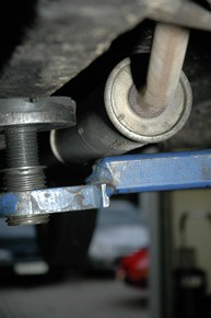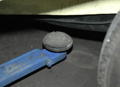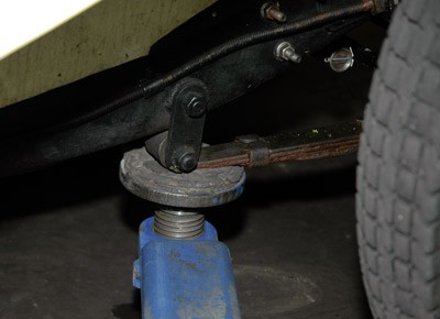von 16: Das Aufnehmen eines Fahrzeugs an den Blattfederaufnahmen ist gefährlich, weil sich diese beim Radfreiheben bewegen und dadurch ein Abrutschen droht.
