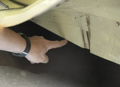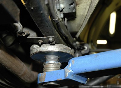von 16: Verpönt, doch bei diesem Morris nicht anders zu realisieren: Hintere Aufnahme unter den Blattfederbefestigungen. Der empfindliche Aufbau bietet keine anderen geeigneten Punkte.