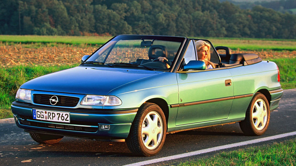 von 11: Den Opel Astra (F) gibt es als drei- und fünftürige Schräghecklimousine, fünftürigen Kombi, viertüriges Stufenheck und ab 1993 auch als Cabrio.