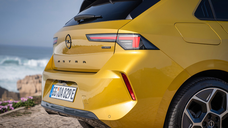 von 7: Der Opel Astra L ist der breiteste Vertreter der Kompaktklasse. Die 1,86 Meter zeichnen sich auch in den langen und schmalen Rückleuchten ab. Die Heckklappe besteht aus Kunststoff.