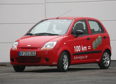 von 5: Bereits zu Beginn des Jahres stellte fahrmitgas.de das Concept Car eines Chevrolet Matiz mit LPG-Antrieb vor. Es wurde als "3-Euro-Auto" angepriesen