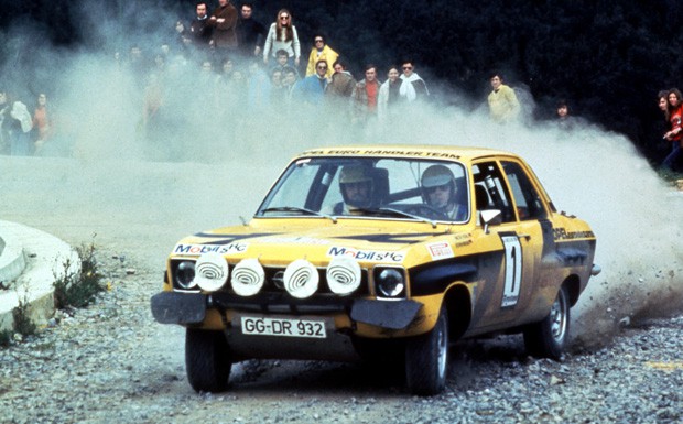 von 14: Mit dem Opel Ascona A Rallye gewinnen Walter Röhrl und Co-Pilot Jochen Berger sechs von acht Läufen und werden 1974 Rallye-Europameister.