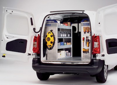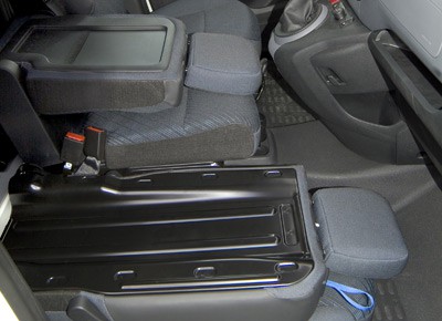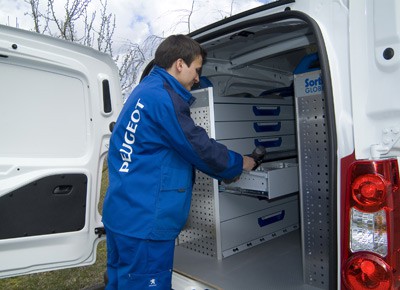 von 5: Auf der linken Fahrzeugseite ist ein Leichtmetallrahmen eingebaut, in den Fachbodenwannen, Fachböden sowie mehrere Schubladen integriert sind.