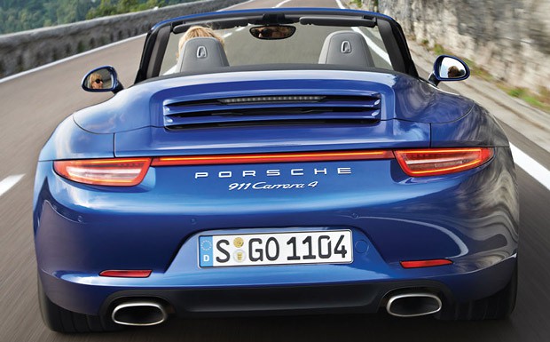von 6: Der Porsche 911 Carrera 4 unterscheidet sich von seinen heckangetriebenen Brüdern durch breitere hintere Radhäuser und das rote Leuchtenband der Bremslichter.