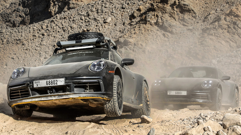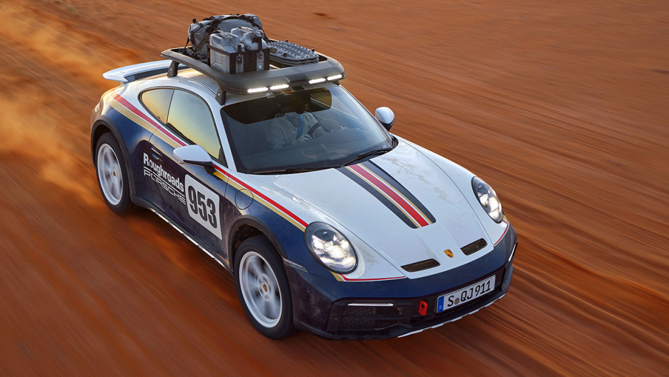 von 10: Bringt Porsche ein neues 911-Derivat, ist dieses meist tiefer gelegt. Ganz anders hingegen der 911 Dakar, der sich bis zu 8 Zentimeter über das Sportfahrwerk-Niveau seiner Baureihen-Brüder erhebt.