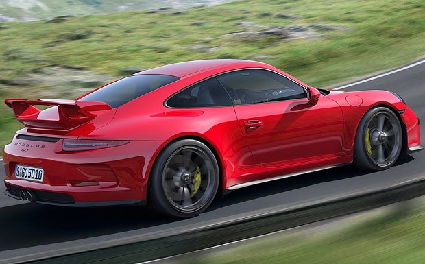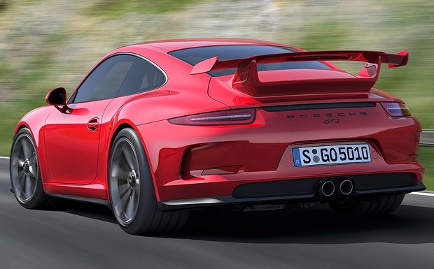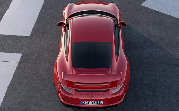 von 9: Optisch unterscheidet sich der GT3 gegenüber dem Carrera durch ein 44 Millimeter breiteres Heck, geänderten Spoilern und insbesondere durch den typischen feststehenden, großen Heckflügel.