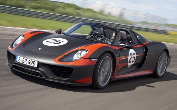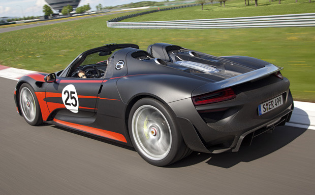 von 6: Rein elektrisch kann der 918 Spyder nach Unternehmensangaben bis zu 30 Kilometer zurücklegen. Dann schafft er den Sprint von Null auf 100 km/h in knapp sieben Sekunden und erreicht 150 km/h Höchstgeschwindigkeit.